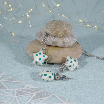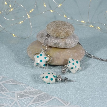 Sous la lumière du jour ou dans le secret de la nuit, cette parure Étoiles révèle sa magie : quelques pois s’illuminent dans le noir, comme des lucioles dans un jardin japonais.