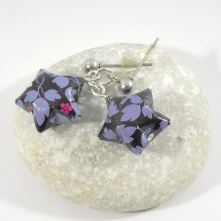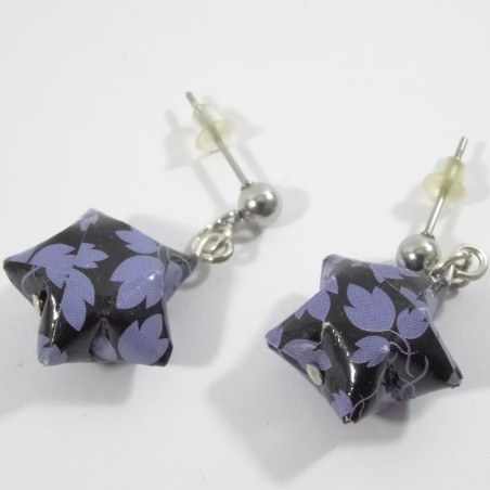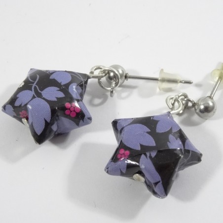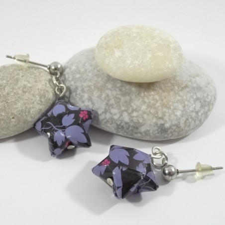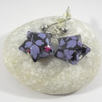 Le charme et l'élégance du noir associés à de délicates fleurs, voici le cocktail de ces Boucles Origami Nova noir avec feuilles bleues.