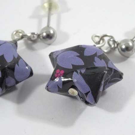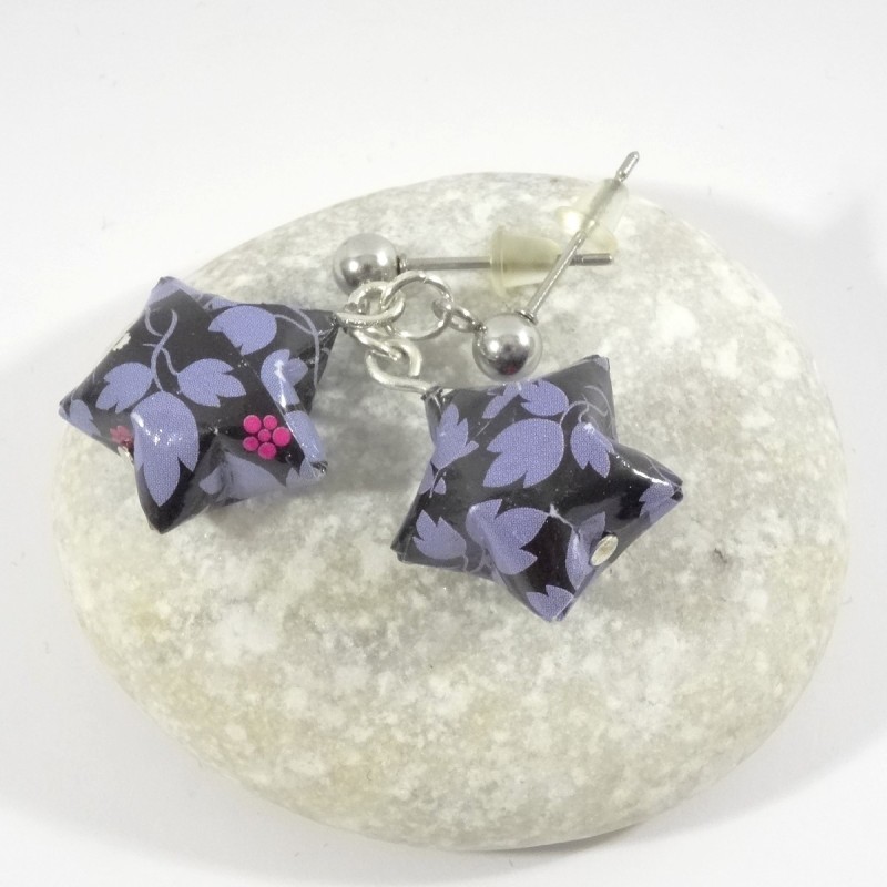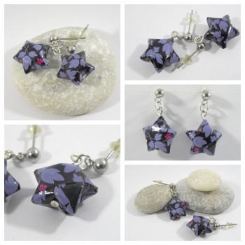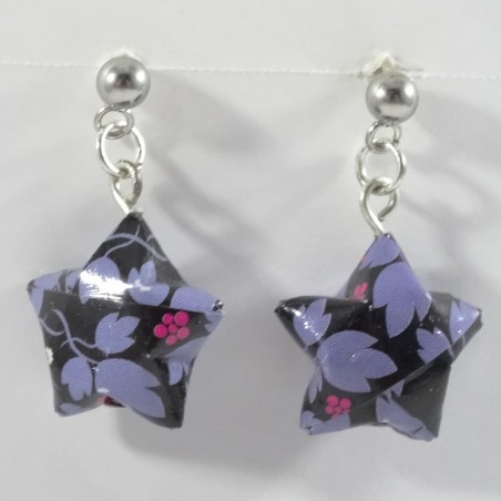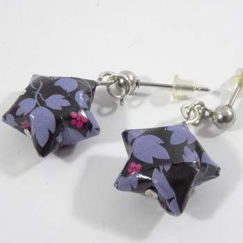 Chaque étoile est constituée d'un papier plié avec minutie à plusieurs reprises. Le papier utilisé est imprimé de fleurs bleu-violet sur fond noir. Chacune des étoiles a été vernie pour lui apporter robustesse et brillance.