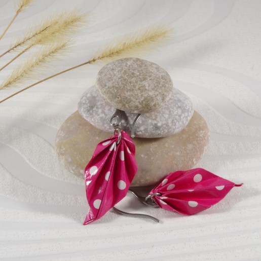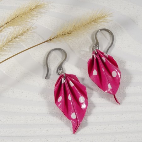 La dernière photo vous présente le modèle Boucle Feuille Origami porté.