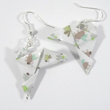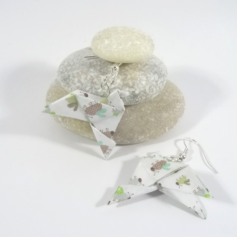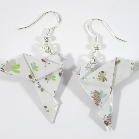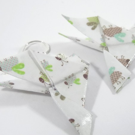 Ces Boucles Oiseaux Origami blanc avec coccinelles multicolores pastels accompagneront parfaitement vos tenues estivales.