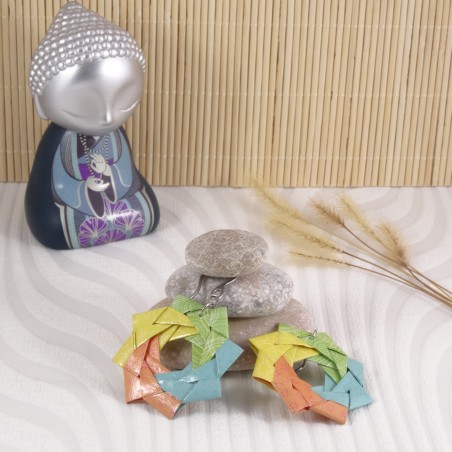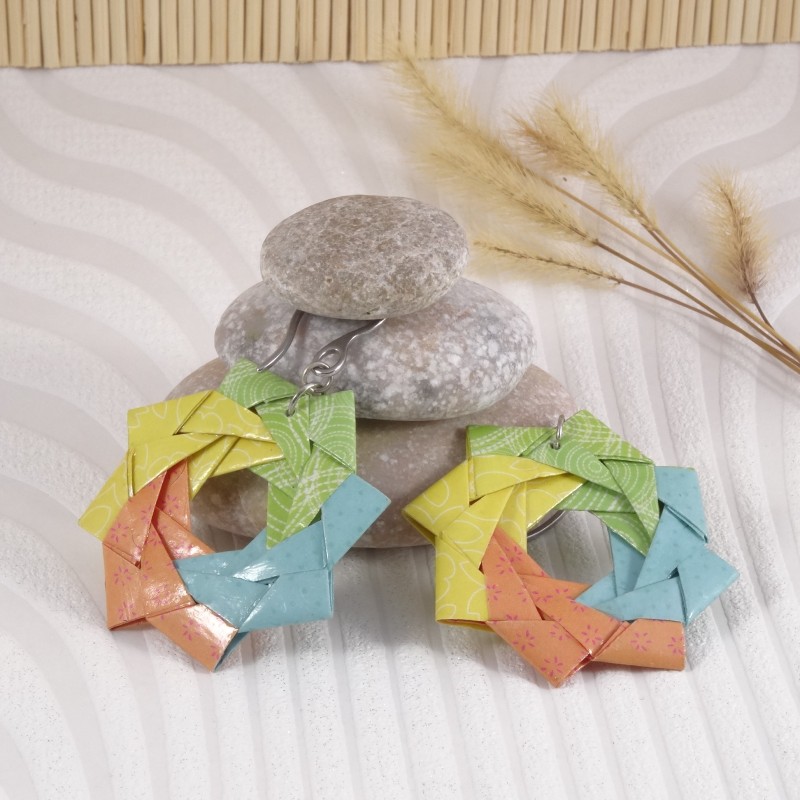 Ces boucles d’oreilles uniques, inspirées de l’art japonais de l’origami, mêlent élégance et symbolisme. Leur design en cercle parfait, évoquant l’ensō, incarne l’équilibre des quatre saisons et la beauté de la nature. Idéal pour un style raffiné, empreint de sérénité japonaise.