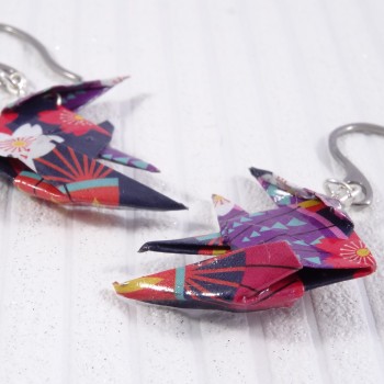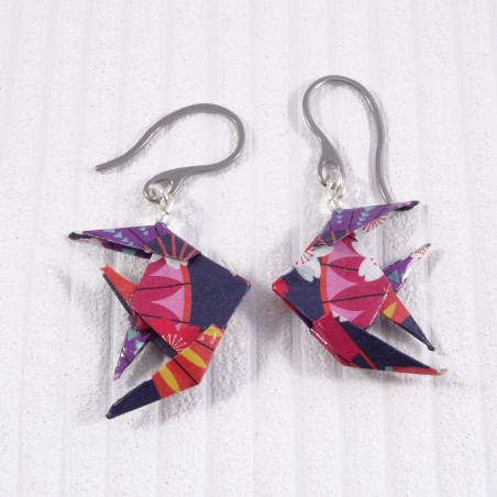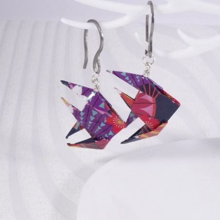 Boucles d’oreilles Poissons Origami avec des éventails multicolores. Un bijou raffiné, festif et énergique, inspiré par la tradition japonaise.
