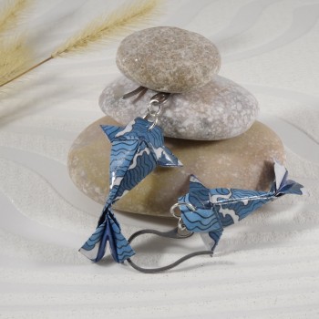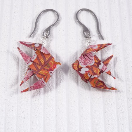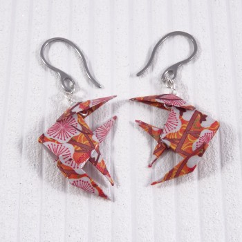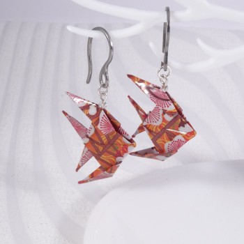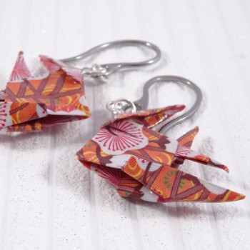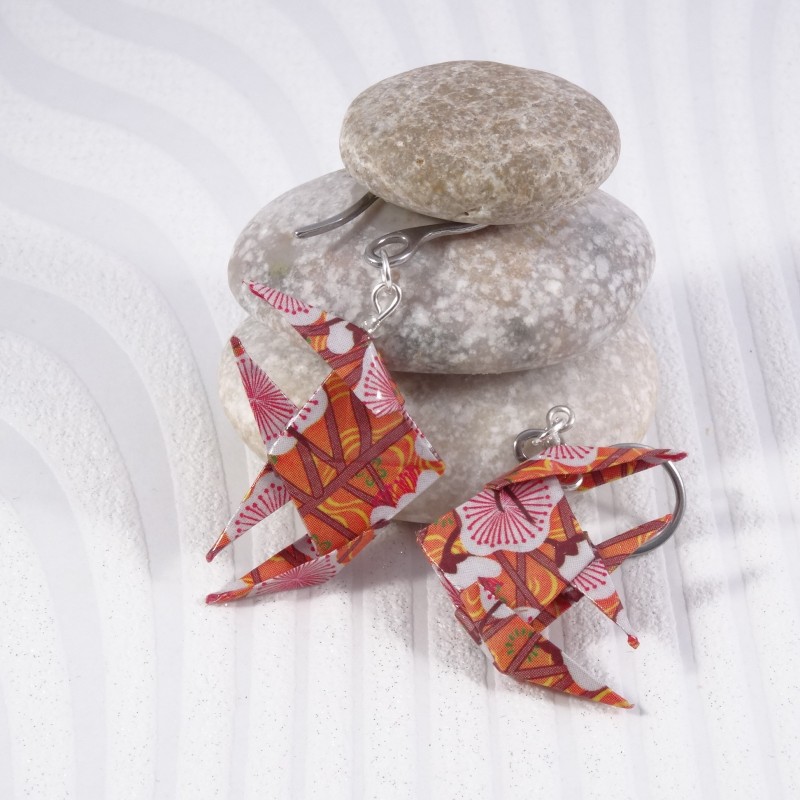 Un souffle de nature et d’élégance avec ces boucles origami aux fleurs blanches délicates, posées sur un fond orange chaleureux. Les branches fines dessinent un paysage poétique, comme une estampe japonaise miniature.