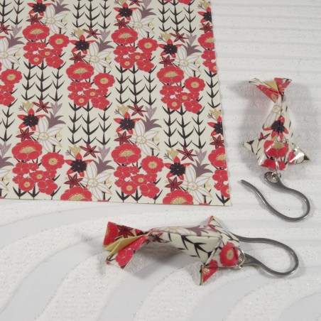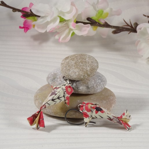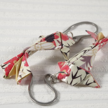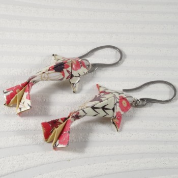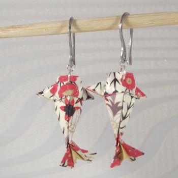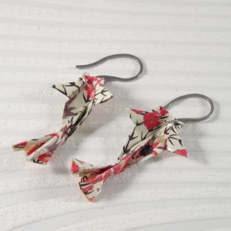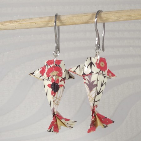 Laisse-toi porter par la douceur de ces boucles d’oreilles origami, où deux carpes koï prennent vie dans un délicat papier blanc cassé, parsemé de fleurs de cerisier.