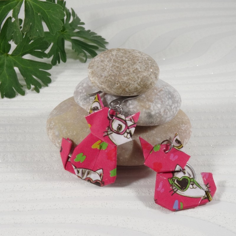 Je plie la feuille, et un nouveau chat naît sous mes doigts. Un chat d’origami qui semble observer le monde avec curiosité.