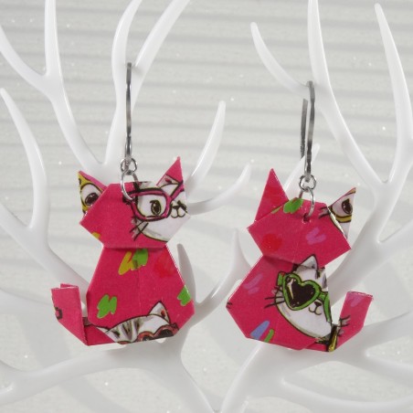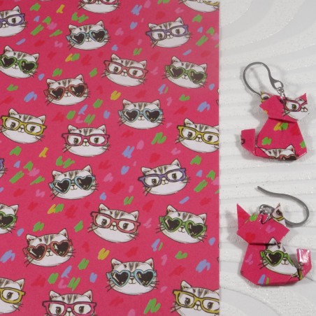 Sur ce fond fuchsia éclatant, de petits chats à lunettes apparaissent comme une bande de personnages malicieux.
