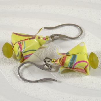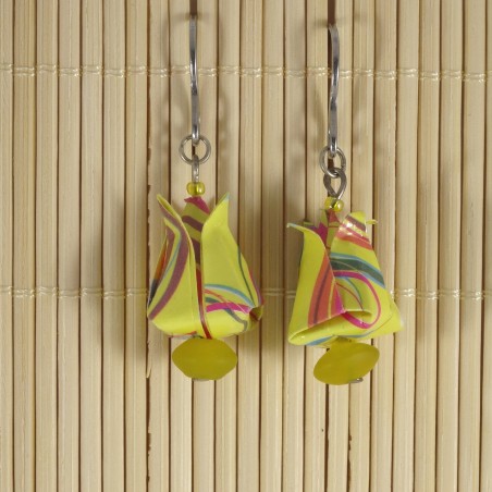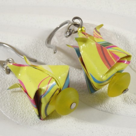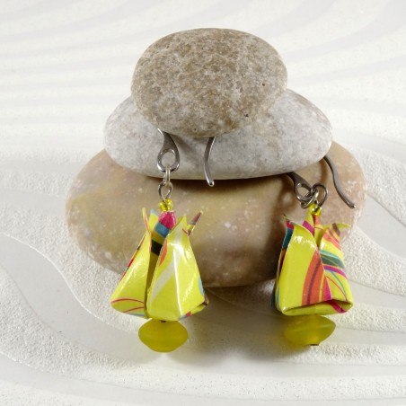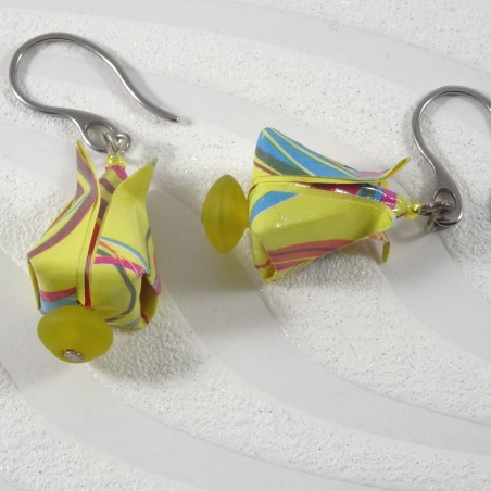 Boucles d’Oreilles Tulipes Origami motif géométrique jaune