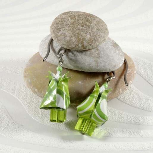 Inspirées par la beauté naturelle de la tulipe, ces boucles d’oreilles en origami symbolisent l’espoir et le renouveau.
