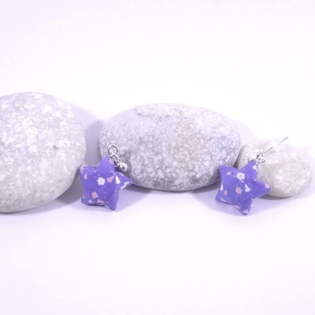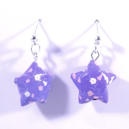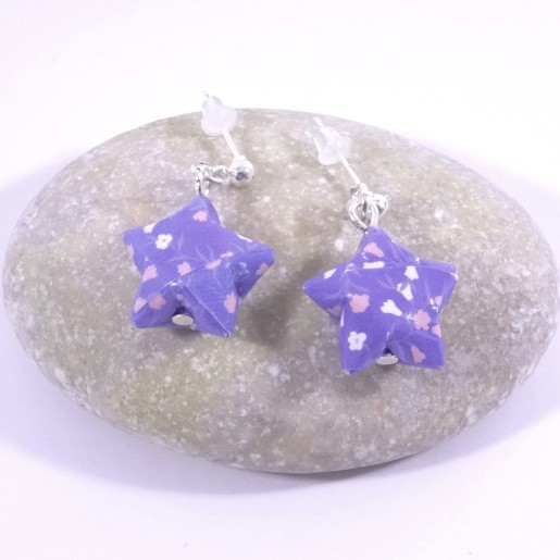 La douceur d'un soir d'automne... Des légères feuilles s'envole dans le crépuscule... On regarde les dernières petites fleurs. Ces Boucles Origami Nova violet avec fleurs roses et blanches vous rappelleront ces douces soirées d'automne.