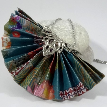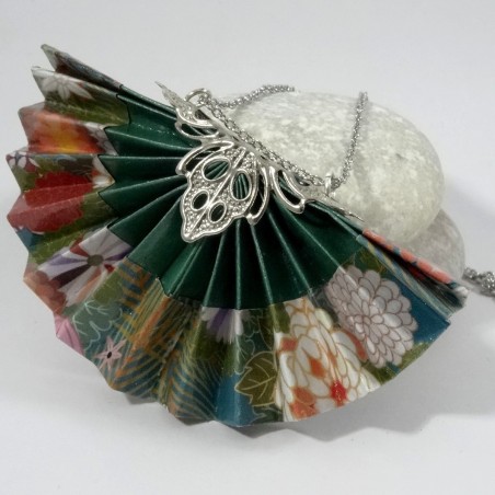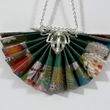 L'éventail est un incontournable du Japon. Ce collier a été créé pour mettre en valeur un délicat éventail de papier plié. En plus de son originalité, il est réversible : recto ou verso à vous de choisir!