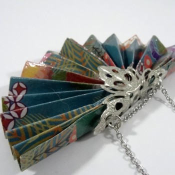 La dernière photo vous présente le modèle Collier Eventail Origami porté.