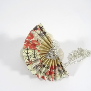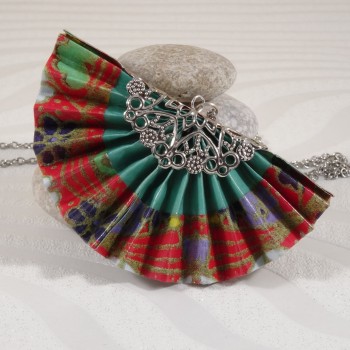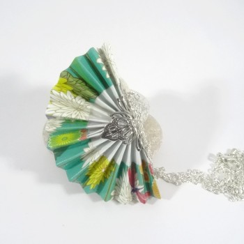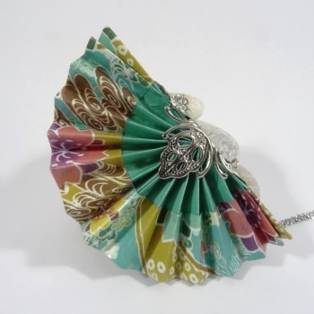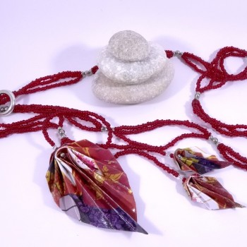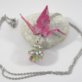 La dernière photo vous présente le modèle Collier Grue Origami sur Bulle porté.