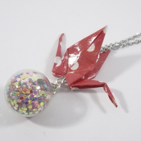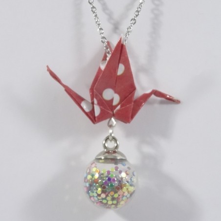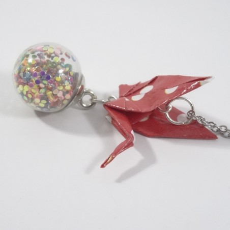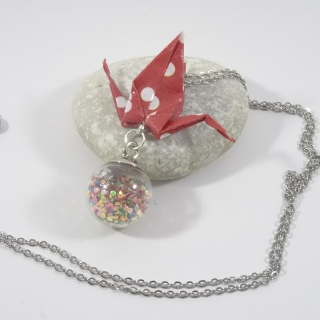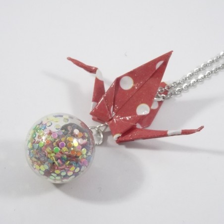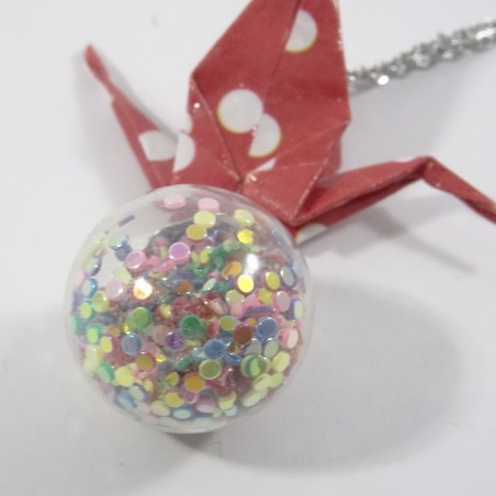 La grue est le symbole de la paix... Posée sur une bulle emplie de paillettes, elle sera du plus bel effet pour vos tenues de fin d'années.