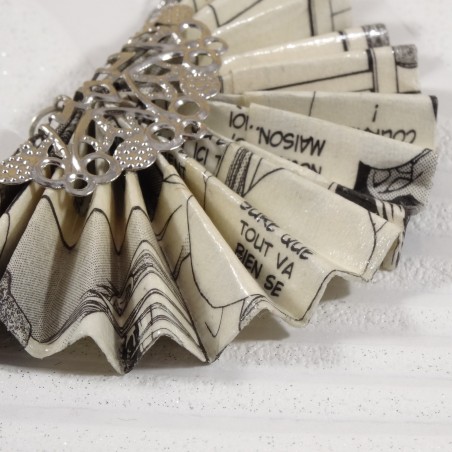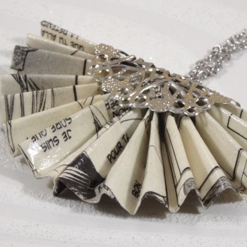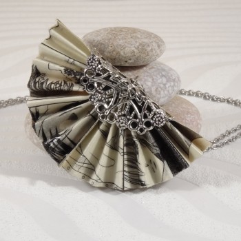 Ce collier délicat en origami est une pièce originale qui mêle l’art ancestral du pliage japonais et l’univers graphique des mangas. Son pendentif en forme d’éventail est réalisé à partir d’une véritable page de manga soigneusement sélectionnée, offrant un design aussi unique que captivant.