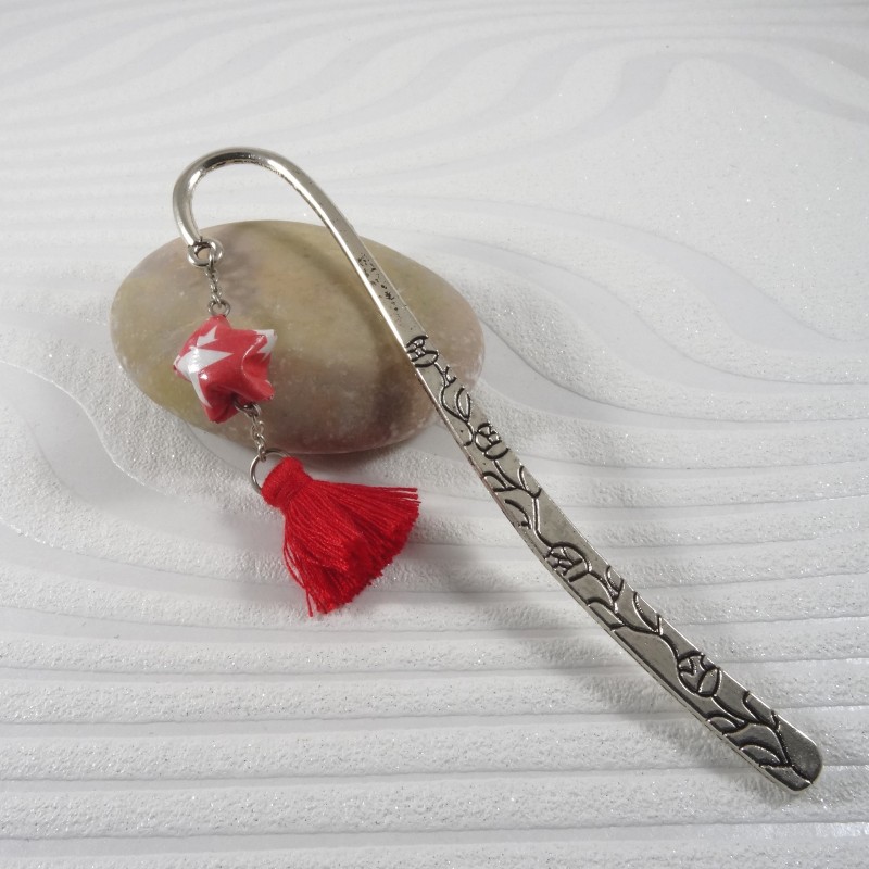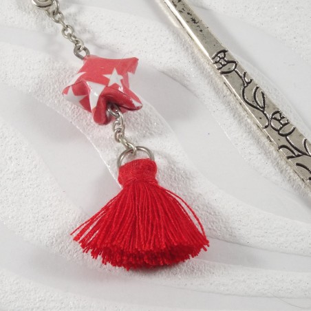 Ne perdez plus la page de votre roman préféré! Ce Marque-Page Origami Pompon rouge avec étoiles blanches vous accompagnera pour vos lectures.